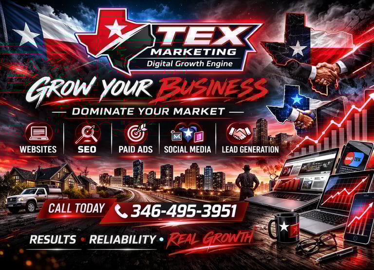 TEX Marketing - helps Texas businesses get more calls, more booked jobs, and real growth through websites, SEO, and paid ads that convert.
